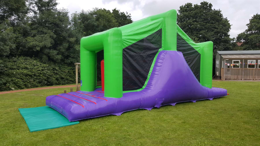 Our fabulous new fun run is ideal for small events, school fetes or even large back gardens, the children will have hours of fun running through the biff bashes, scrabbling up the climbing wall and sliding down the 8ft platform slide only to run around and do it all again!! complete with fully covered slide for extra safety and netted sides making supervision an easy task.