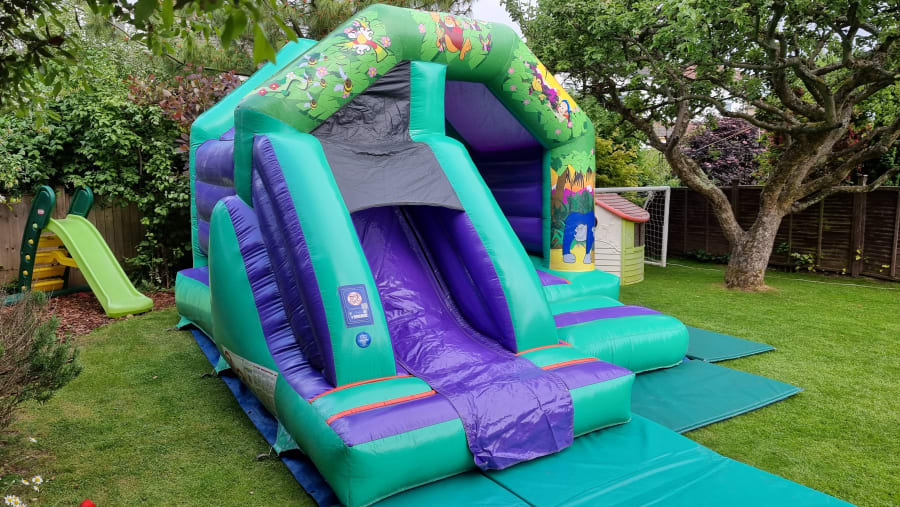 Swing with the monkeys🐵 , bounce as high as a giraffe🦒 , roar as loud as an angry tiger 🐯, with this combi jungle theme bounce 'n' front slide!!