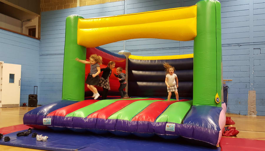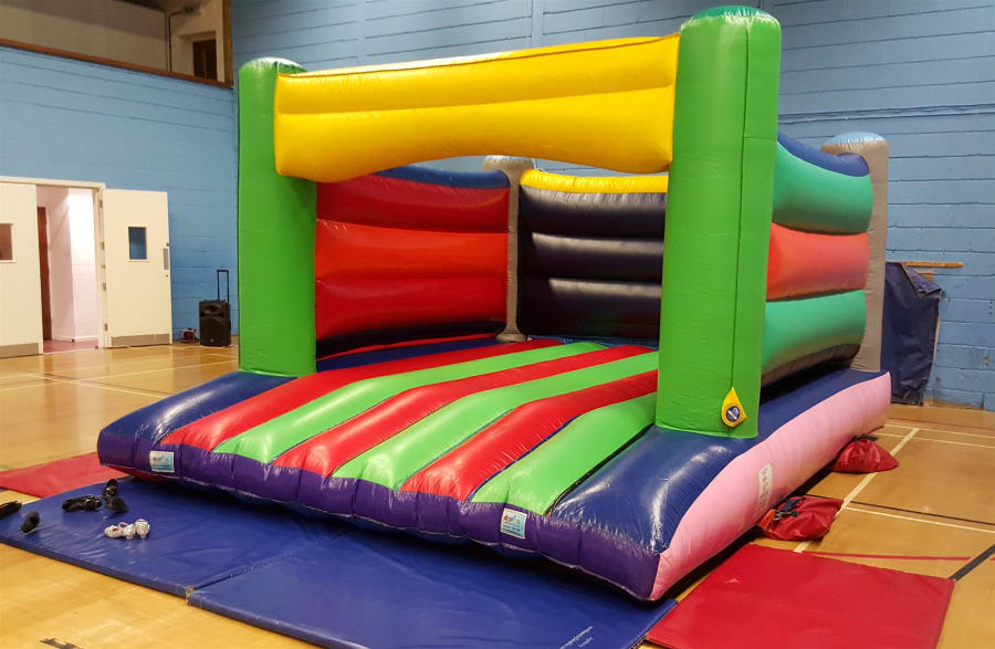 This bouncy castle is covered in rainbow colours, and it's sure to be a striking feature at any event. Bounce around in style in this attractive large area, multi-coloured inflatable. Like all our bouncy castles, this is available to hire throughout Bristol and the surrounding areas.